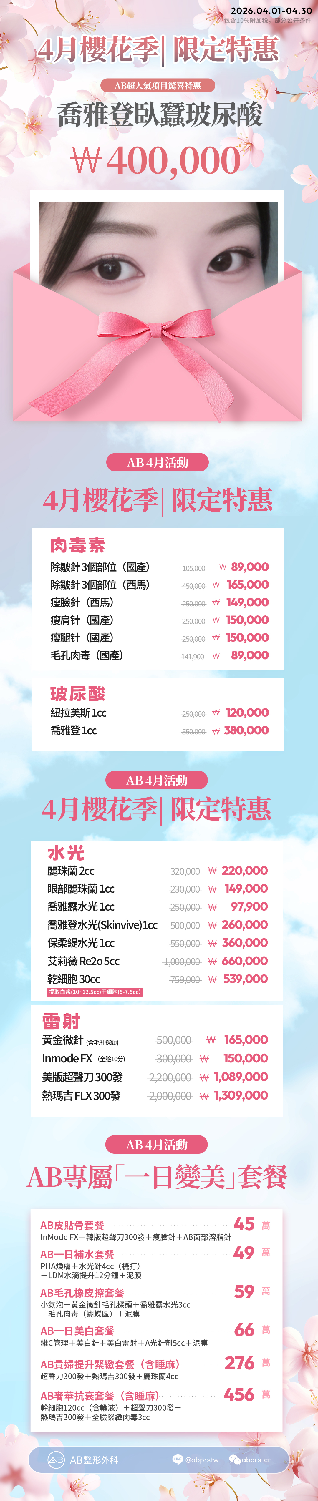 #韓國皮膚科#韓國醫美#4月活動#櫻花季醫美#水光針#熱瑪吉#超聲刀#韓國皮膚管理#抗老提升#韓國醫美活動