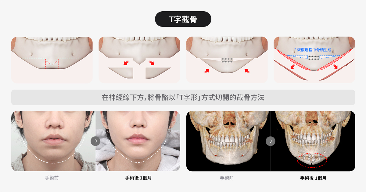 T截骨是韓國削骨手術中常見方式,通過T字型截骨: