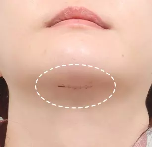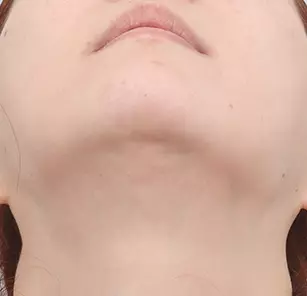 双下巴肌肉去除术的切口位于不易被看到的下巴下方位置,因此从正面几乎看不出痕迹。正面看不到切口位置